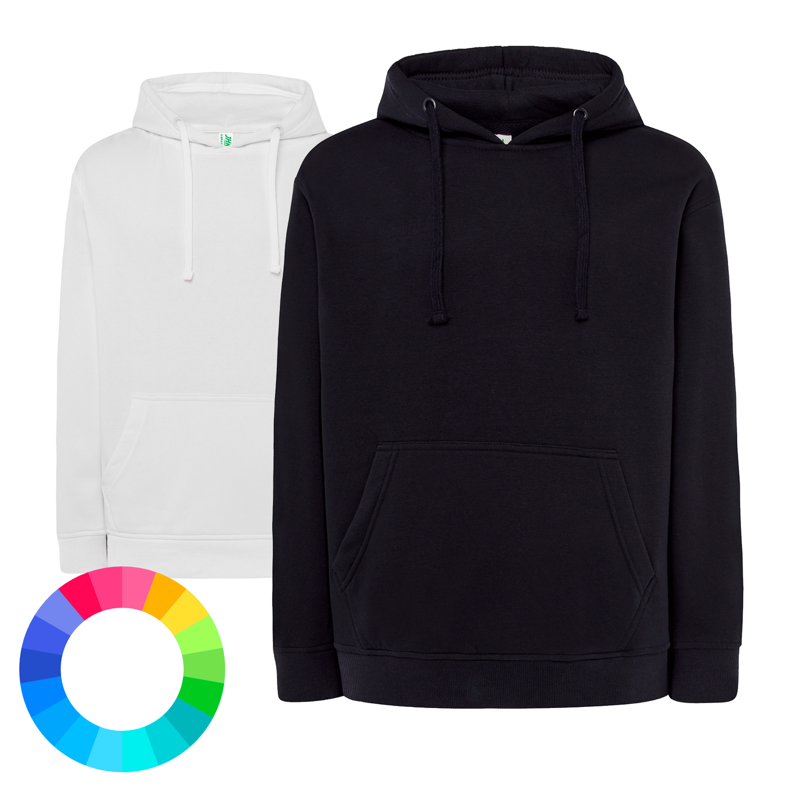Sudadera cómoda y resistente, con bolsillo canguro y cordón a tono, disponible desde la talla XS hasta la 3XL. Ideal para uso diario, regalos personalizados o diseños propios.